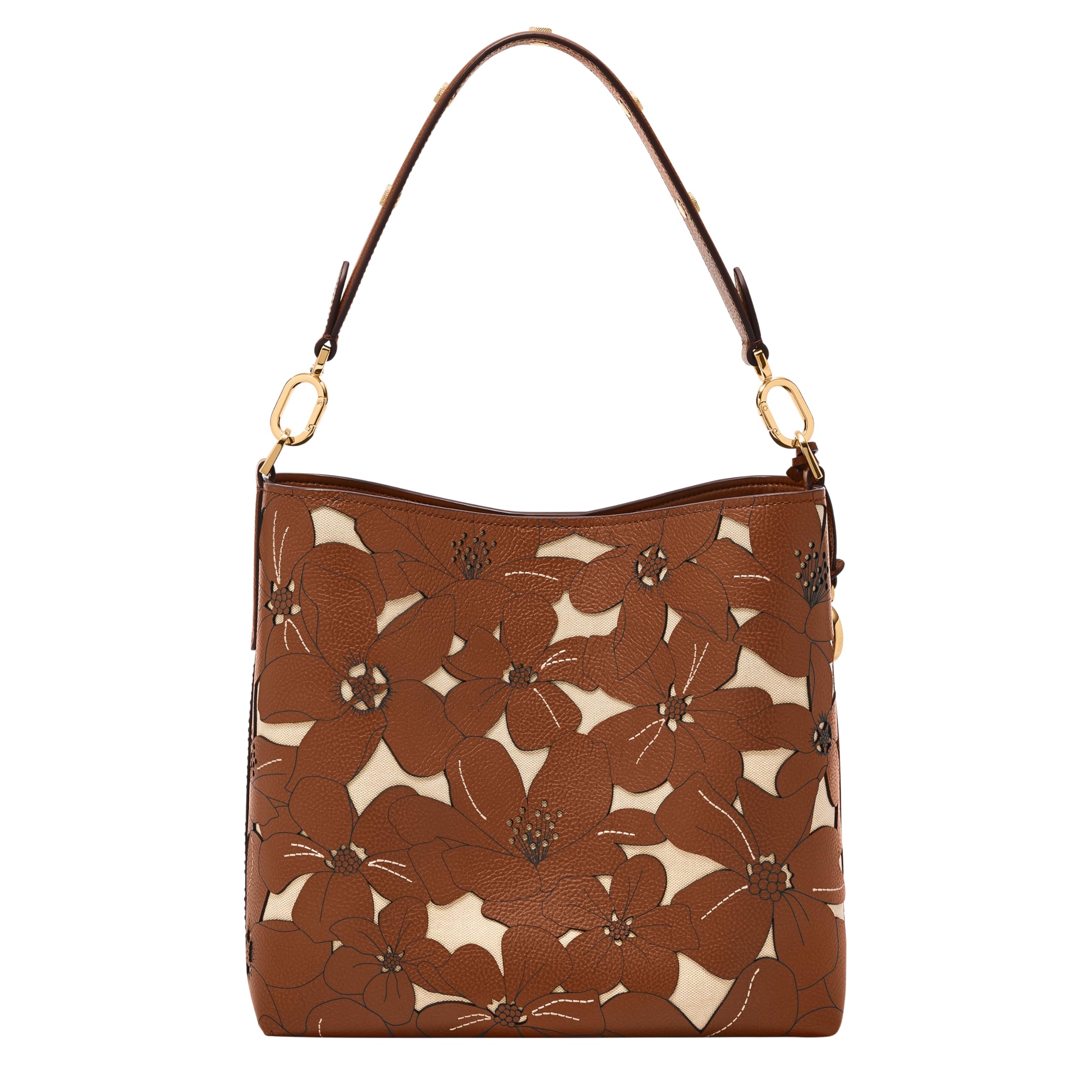 - Our bestselling Jessie Bucket bag gets a refresh with a floral cutout motif and playful stitching. The design features a center zipper pocket and easy shoulder strap accented with our signature knurled hardware.