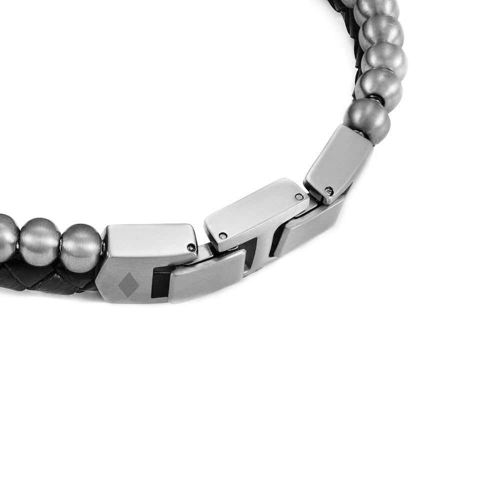 Fossil Men's Beads Black Leather Multi-Strand Bracelet